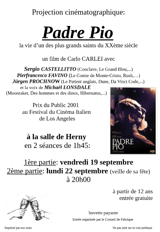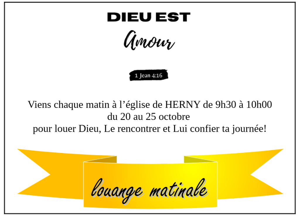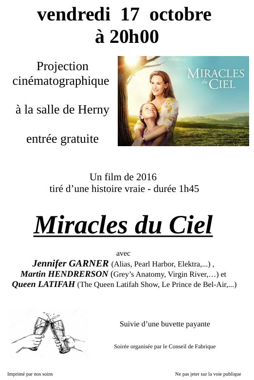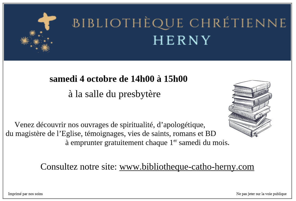 Les actualités de la paroisse Prochaine messe : mardi 21 octobre à 18h00 à la sacristie. Prochaine messe Samedi 11 octobre à 18h en l’église de Herny. —